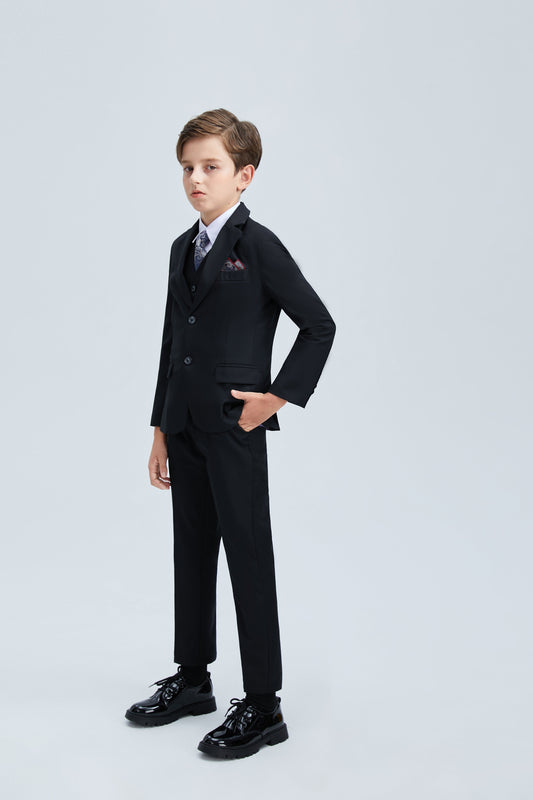 Black 4 Piece Boys' Formal Suit Set with Vest Pants Dress Shirt and Tie BS35