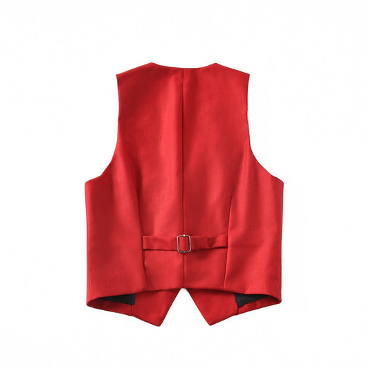 Red 3 Buttons Boys Girls Fully Lined Formal Suit Vest