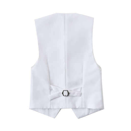 White 3 Buttons Boys Girls Fully Lined Formal Suit Vest