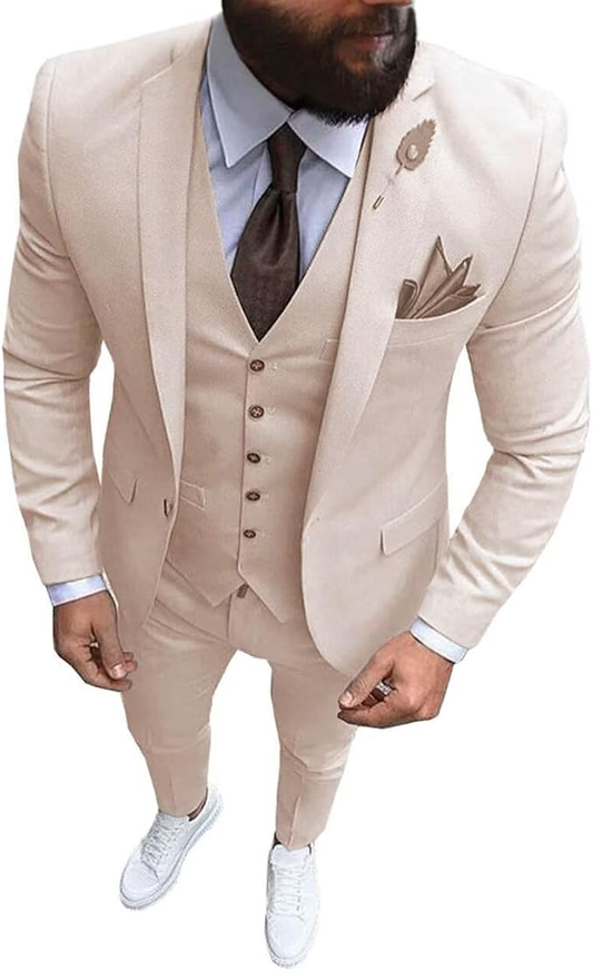 Men Suits Slim Fit 3 Pieces Wedding Formal Business Tuxedos One Button