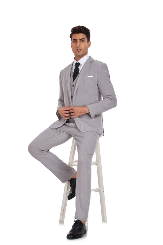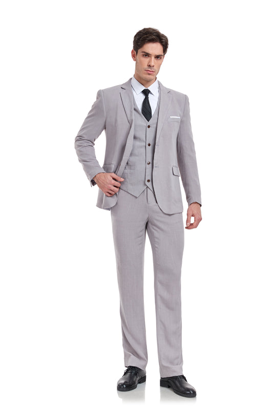 Grey Retro Linen Beach Wedding Summer 3 Pieces Men Suits