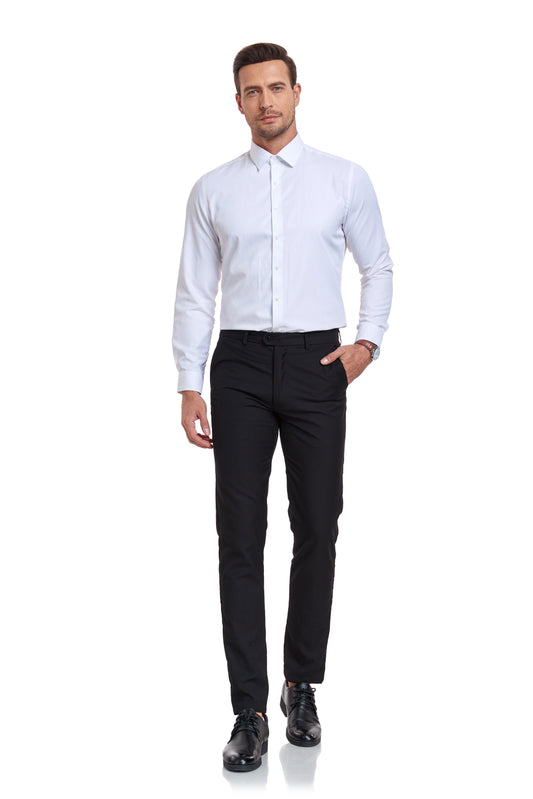 White Men's Urban Stylish Casual Business Slim Fit Long Sleeve Button Up Dress Shirt