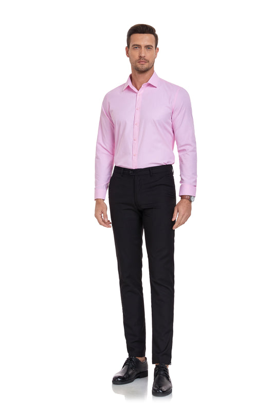 Pink Men's Urban Stylish Casual Business Slim Fit Long Sleeve Button Up Dress Shirt