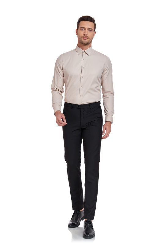 Champagne Men's Urban Stylish Casual Business Slim Fit Long Sleeve Button Up Dress Shirt