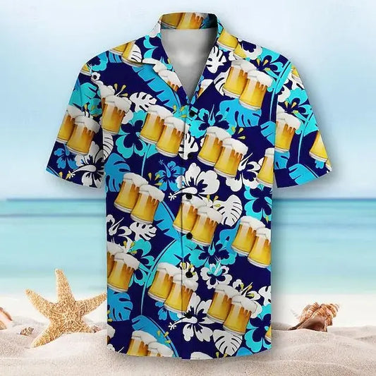 Floral Casual Men's Shirt Holiday Summer Turndown Short Sleeve Shirt