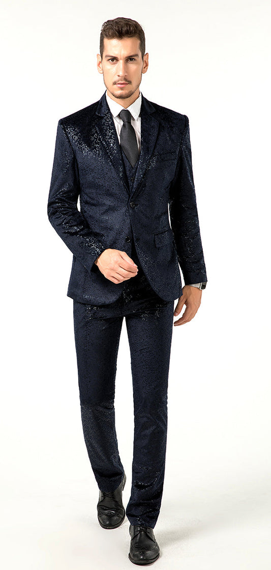 Navy Two Button Wedding 3 Pieces Slim Fit Men Suits