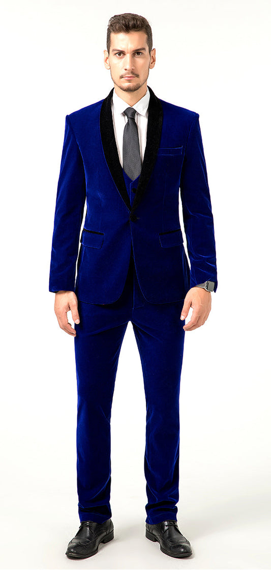 Blue Velvet Wedding Formal Party Business 4 Piece Men Suits Online MS011
