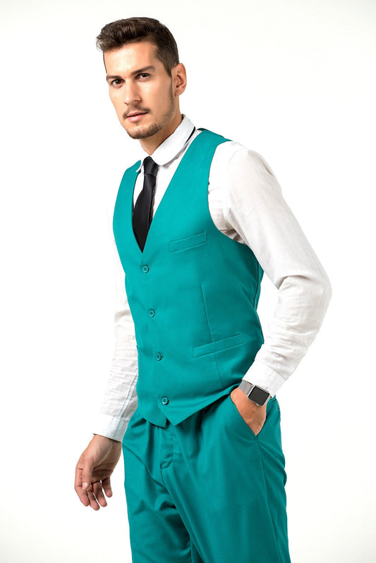 Green Men's Suits 2 Pieces Vest+Pants Set V-Neck Slim Fit Casual Waistcoat Suit
