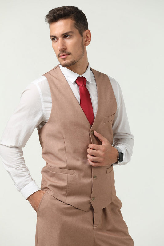 Khaki Men's Suits 2 Pieces Vest+Pants Set V-Neck Slim Fit Casual Waistcoat Suit
