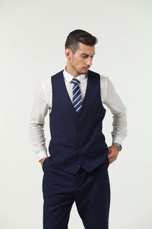 Navy Men's Suits 2 Pieces Vest+Pants Set V-Neck Slim Fit Casual Waistcoat Suit