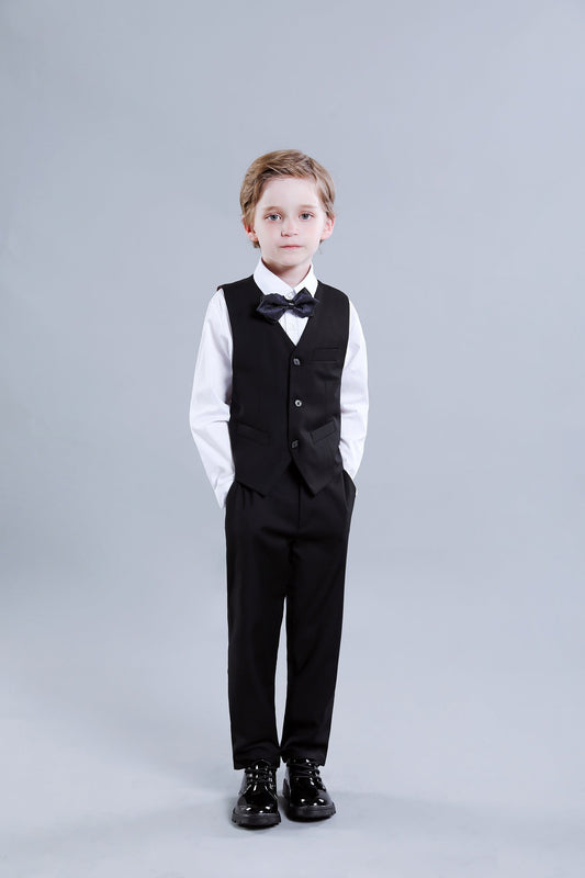Black Striped Modern 4 Piece Boy's Formal Suits