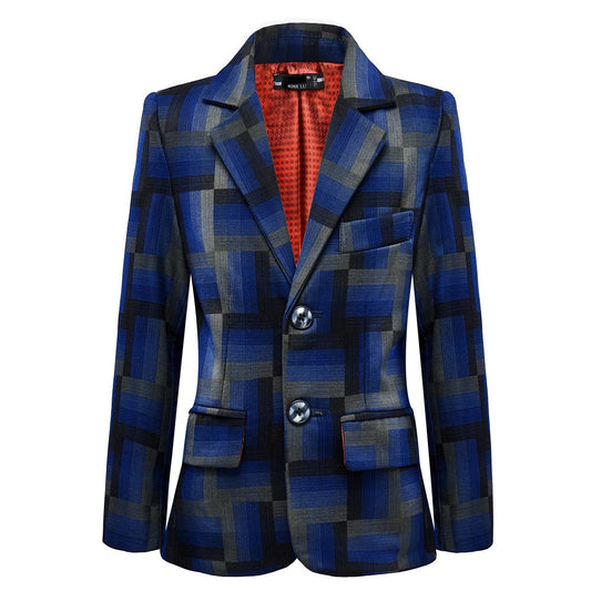 Navy Plaid Elegant Formal 5 Piece Boys Suits