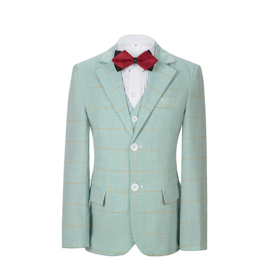 Mint Green Plaid 3 Piece Boys Suits Blazer Vest and Pants