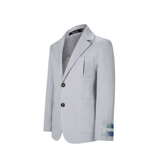 Khaki Plaid Boys Formal Blazer, School Jacket