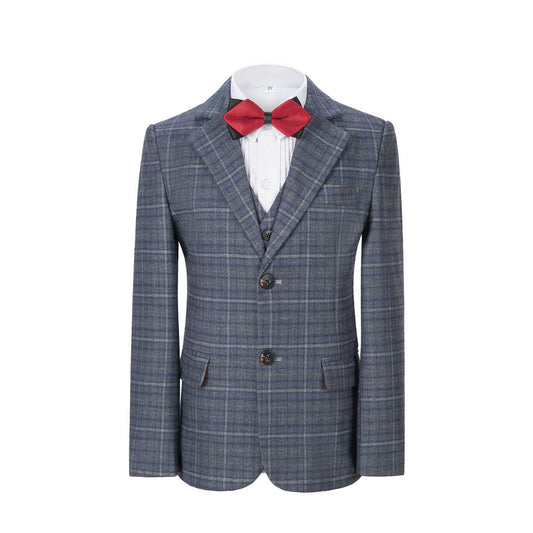 Blue-white Plaid 3 Piece Boys Suits Blazer Vest and Pants