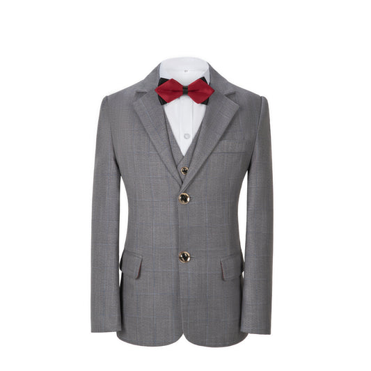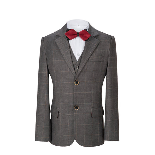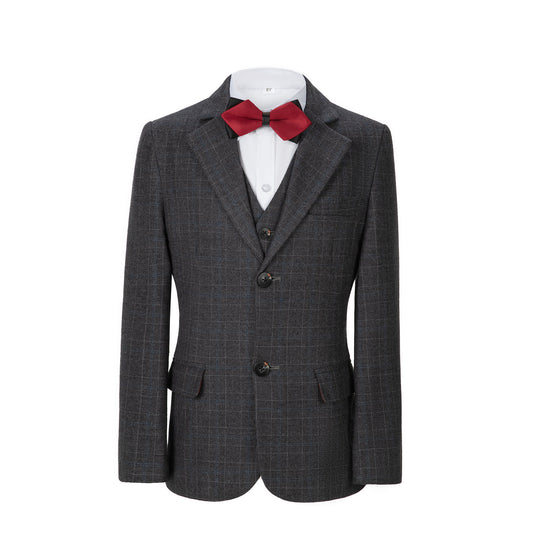 Grey Plaid 3 Piece Boys Suits Blazer Vest and Pants