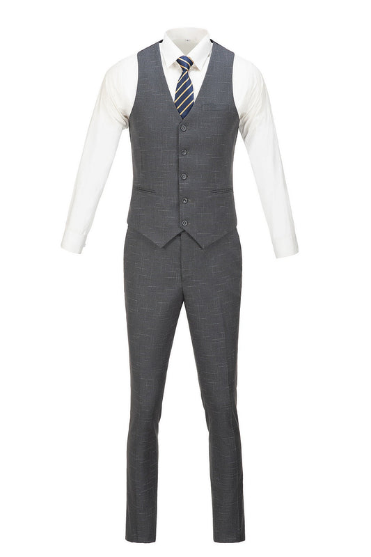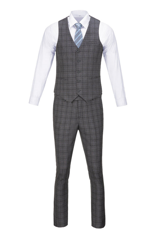 Grey Plaid Men's 3 Piece Slim Fit Suit for Party, Wedding and Business