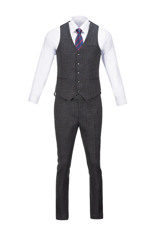 Dark Grey Plaid Men's 3 Piece Set for Party, Wedding and Business