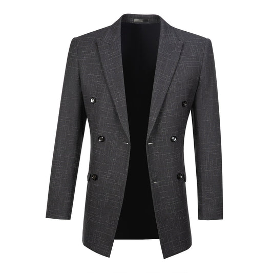 Dark Grey Plaid Men's Blazer for Party, Wedding and Business