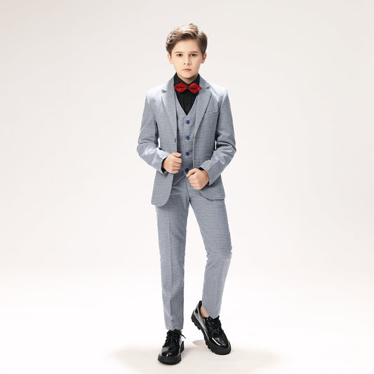 Plaid Woolen Elegant 5 Piece Boys Suits