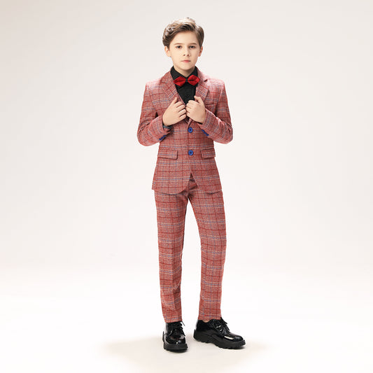 Red Plaid Elegant 5 Piece Boys Suits