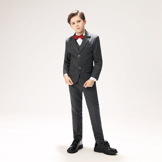 Grey Woolen Elegant 5 Piece Boys Suits
