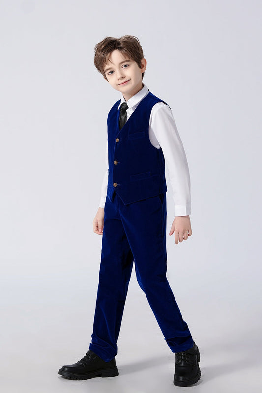 Royal Blue Velvet 3 Piece Boy's Formal Boys Suits With Jacket Vest Pants
