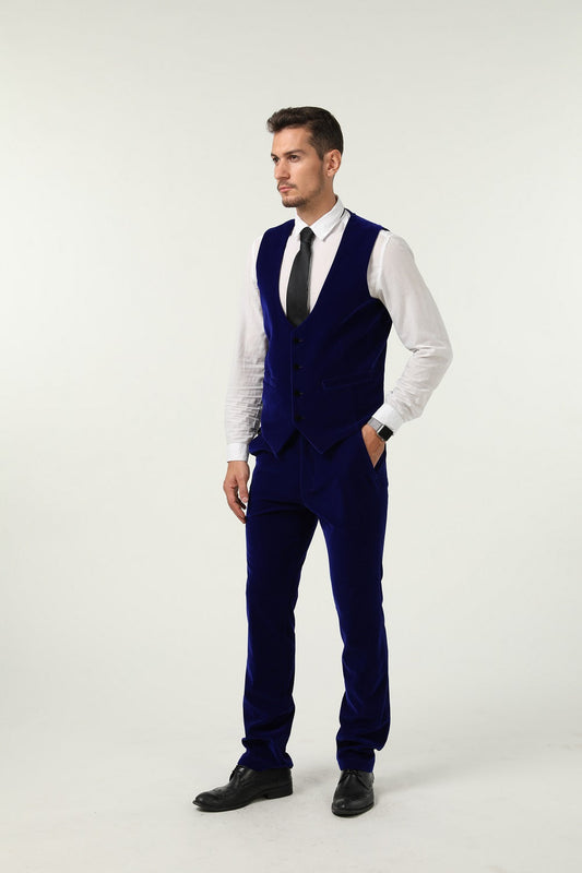 Royal Blue Velvet 3 Piece Men's Formal Suits With Jacket Vest Pants