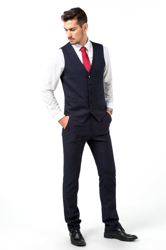 Navy Stripe Men's 3 Piece Set Double Breasted Blazer Vest Pants for Party, Wedding and Business
