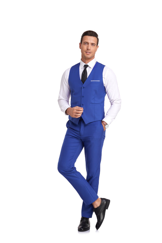 Königsblauer Herrenanzug 2-teilig Weste+Hosen-Set V-Ausschnitt Slim Fit Freizeitweste