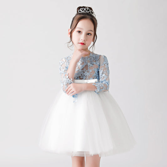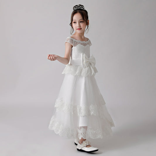 Weißes Rüschenkleid mit Schleife und Aufdruck für Blumenmädchen 3189