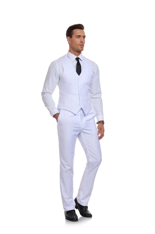 Weiße Herrenanzüge 2-teilig Weste + Hose Set V-Ausschnitt Slim Fit Freizeitweste Anzug