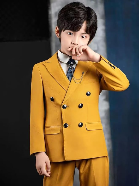 Jungenanzug 3-teilig Zweireihiger Smoking Einfarbig Blazer Weste Hose Kinderanzug für formelle Hochzeitsfeier