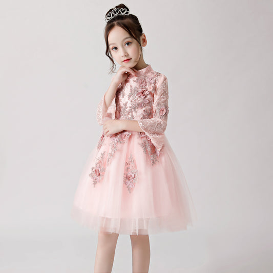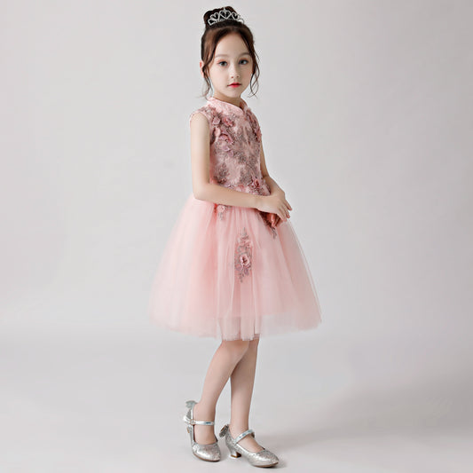 Weißes, besticktes und bedrucktes Cheongsam-Puffkleid für Blumenmädchen 3188